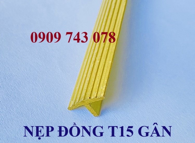 Nẹp Đồng T15 Gân là sản phẩm thi công chỉ chống trơn trượt nội và ngoại thất xây dựng. Được sản xuất từ chất liệu đồng, biên dạng chữ T mặt gân chống trơn trượt. Sản phẩm còn được gọi các tên khác: Thanh đồng T15 gân. Chỉ đồng T15 gân chống trơn.