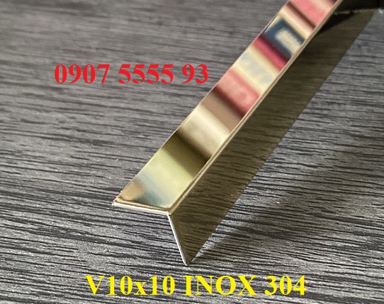 Sản phẩm được sản xuất từ chất liệu thép không gỉ inox 304 dày 0.6-1,2mm. Kích thước V10x10x2438mm và kich thước V10x10x3000mm.