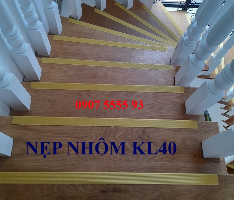 Nẹp nhôm chống trơn L40 gân vàng dễ ứng dụng. Gia cố bằng keo chuyên dụng hoặc keo xây dựng.