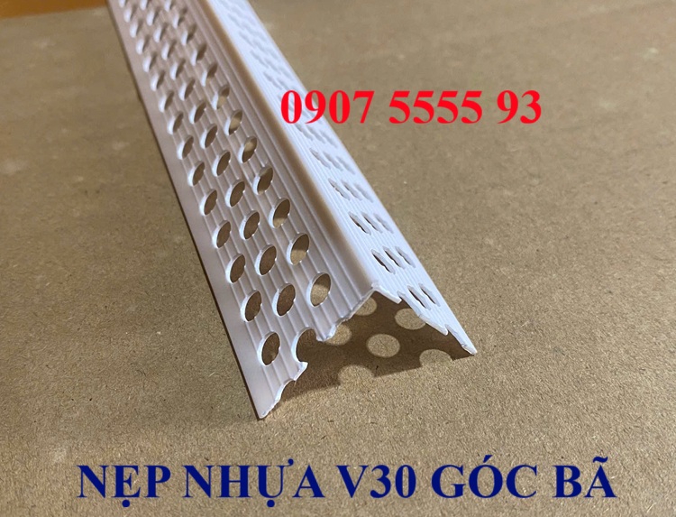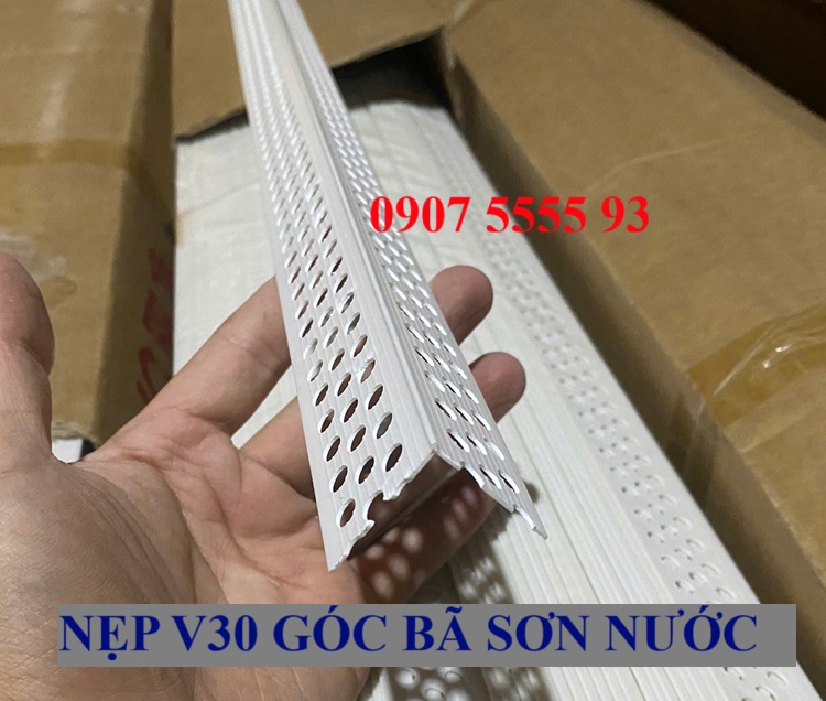Nẹp V30 Góc Bã Sơn Nước là sản phẩm nẹp ứng dụng công đoạn bã matit góc cạnh. Được sản xuất từ chất liệu nhựa, biên dạng V lỗ. Sản phẩm còn được gọi các tên khác: Thanh V30 lỗ bã sơn nước. Nẹp góc bã sơn nước, thanh v góc thạch cao.